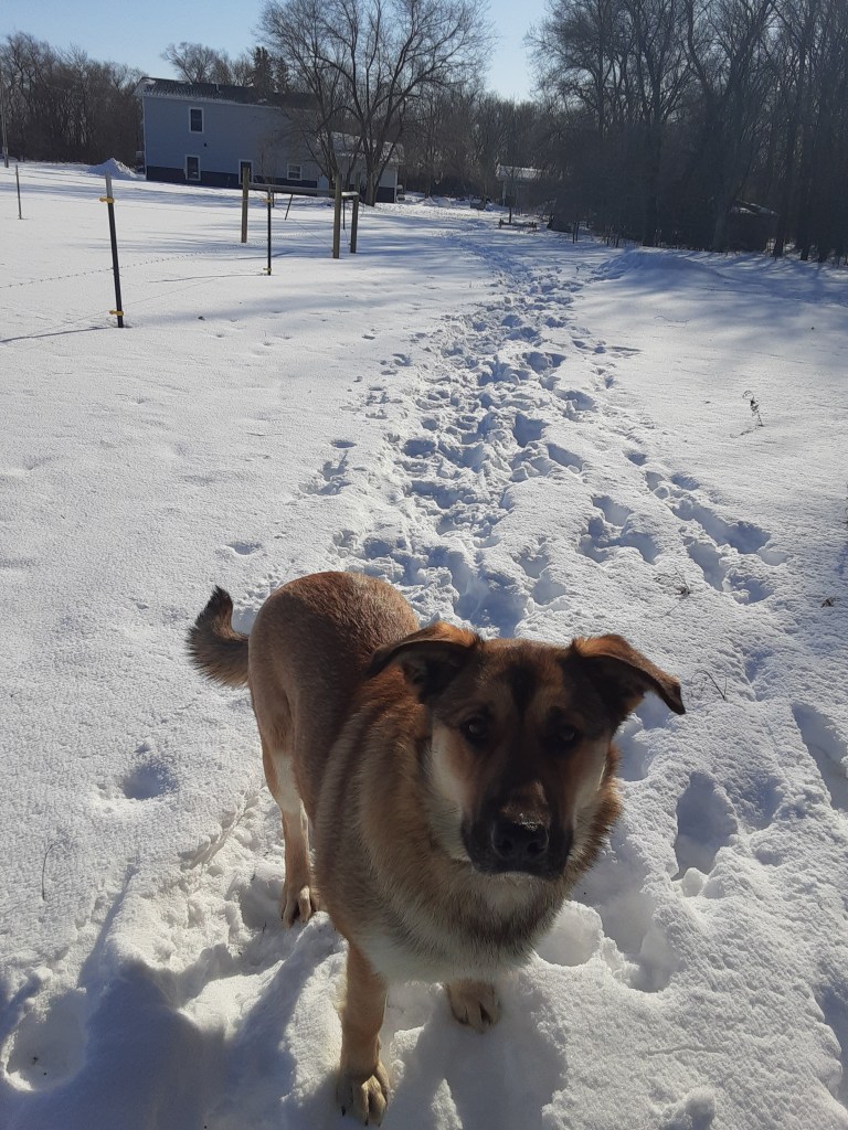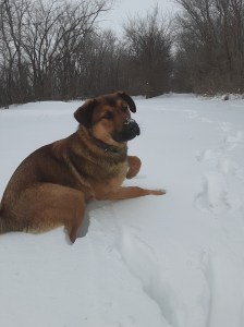We have had a lot of snow this year, and I have been laughing as I watch our two dogs- Baxter and Ranger- trudge through the snow. When they fall in over their heads, they whine and bark for help.
