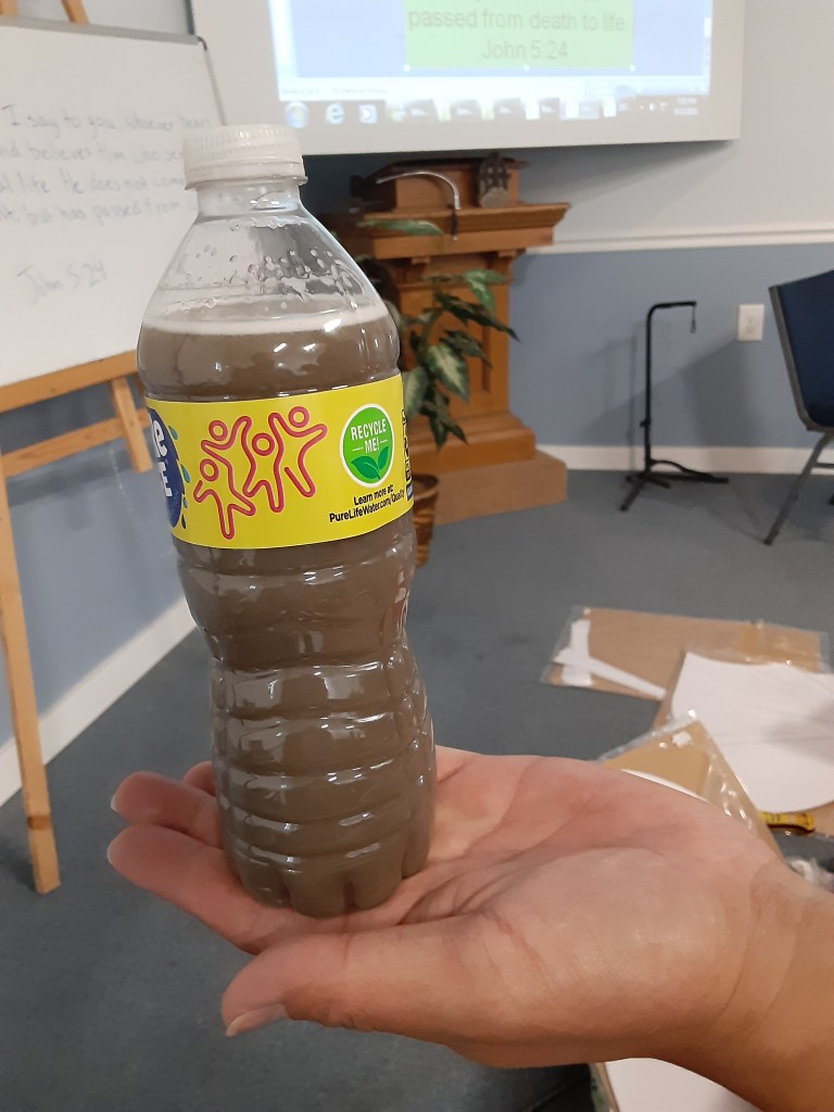 The young man brought me a water bottle on Sunday that was filled with a grey sludge.