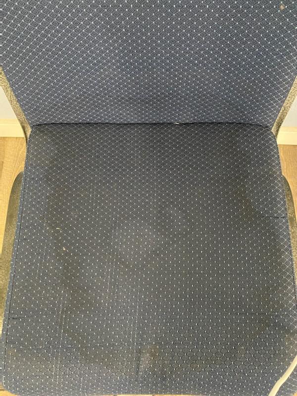 I’m embarrassed to tell you how filthy the chairs were. Five years of spaghetti dinners and Vacation Bible Schools accumulated in real time.