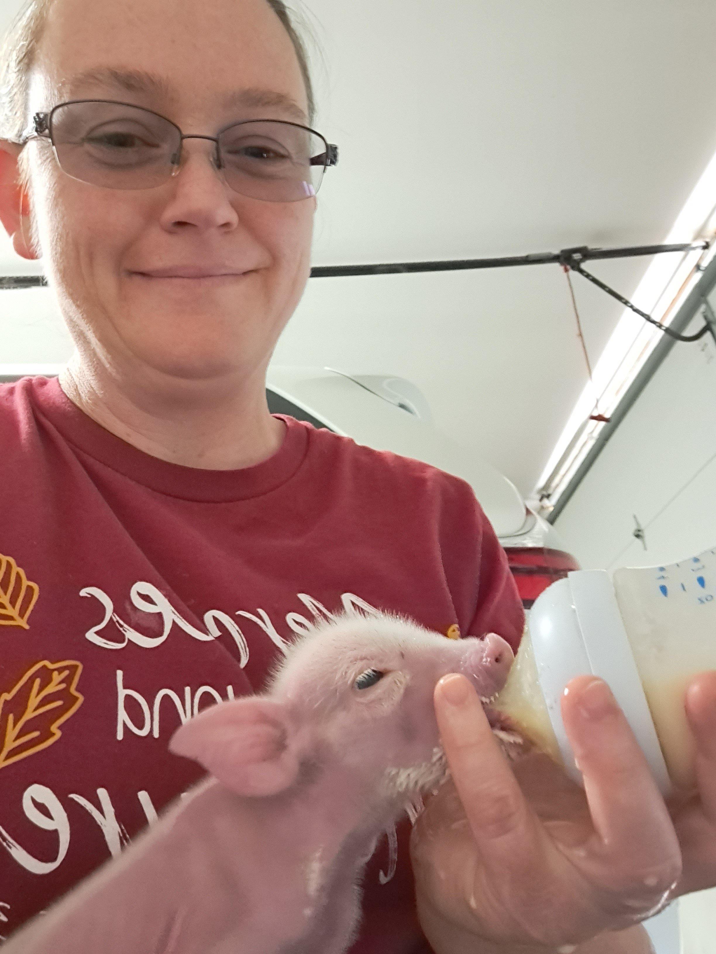 In a Charlotte’s Web scenario, I brought the little pig into the garage. It was unresponsive, with mud plugging its nose and mouth. After a quick wash, he grunted a little. I hurriedly plugged in the heating pad and heated some milk.
