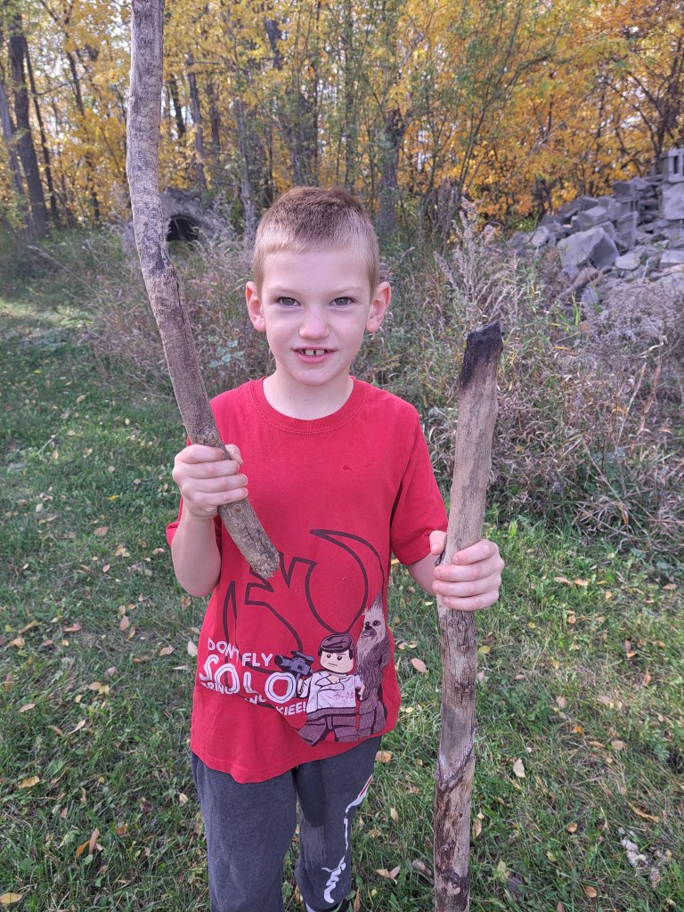 I tried explaining that they were only sticks, but he carefully explained how they were daggers and arrows and scimitars.