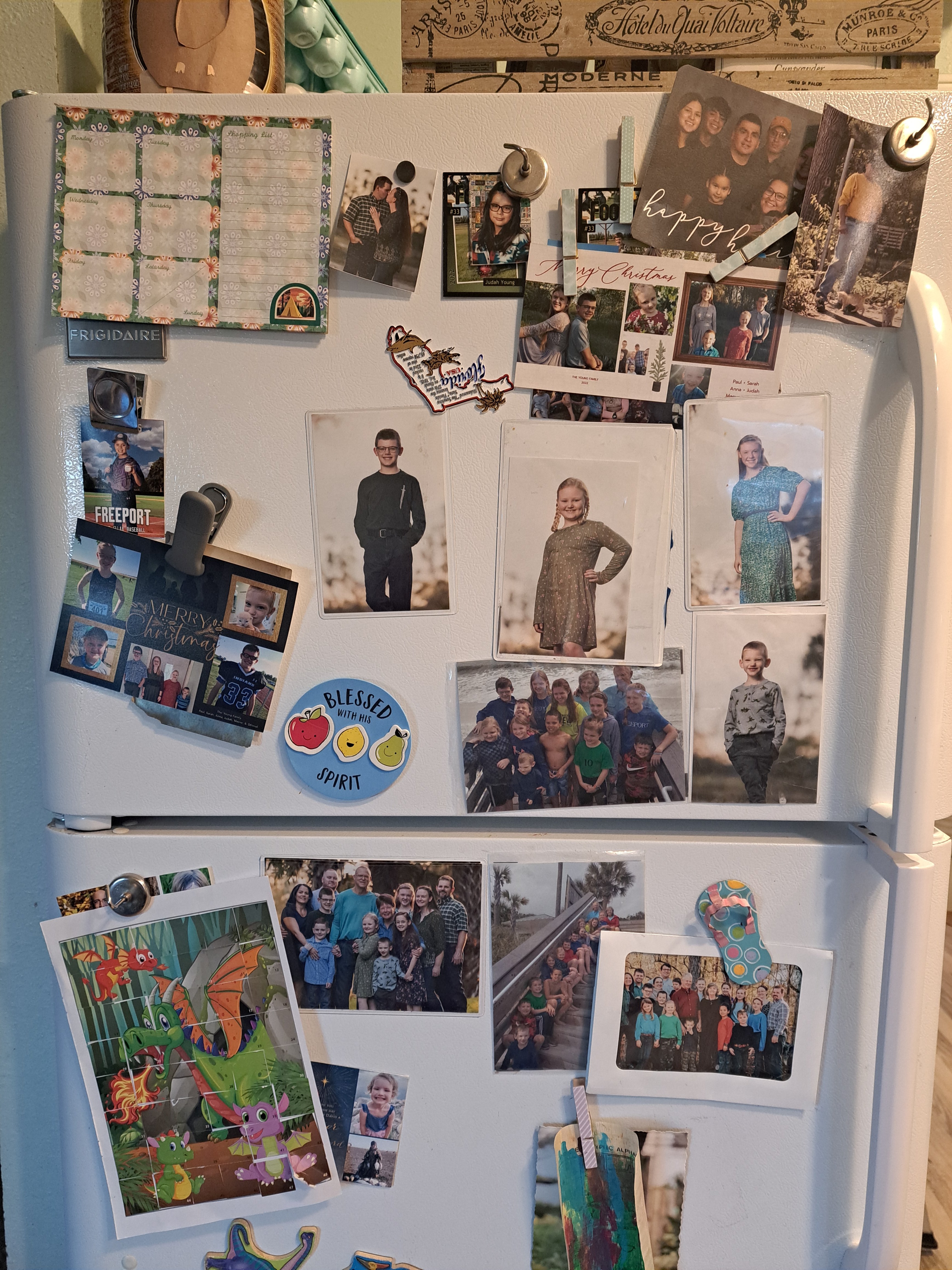But her question kept me thinking. I keep pictures on my refrigerator. Christmas cards from years gone by, newspaper clippings, school photos, and funny sayings remind me of people and places that I love.