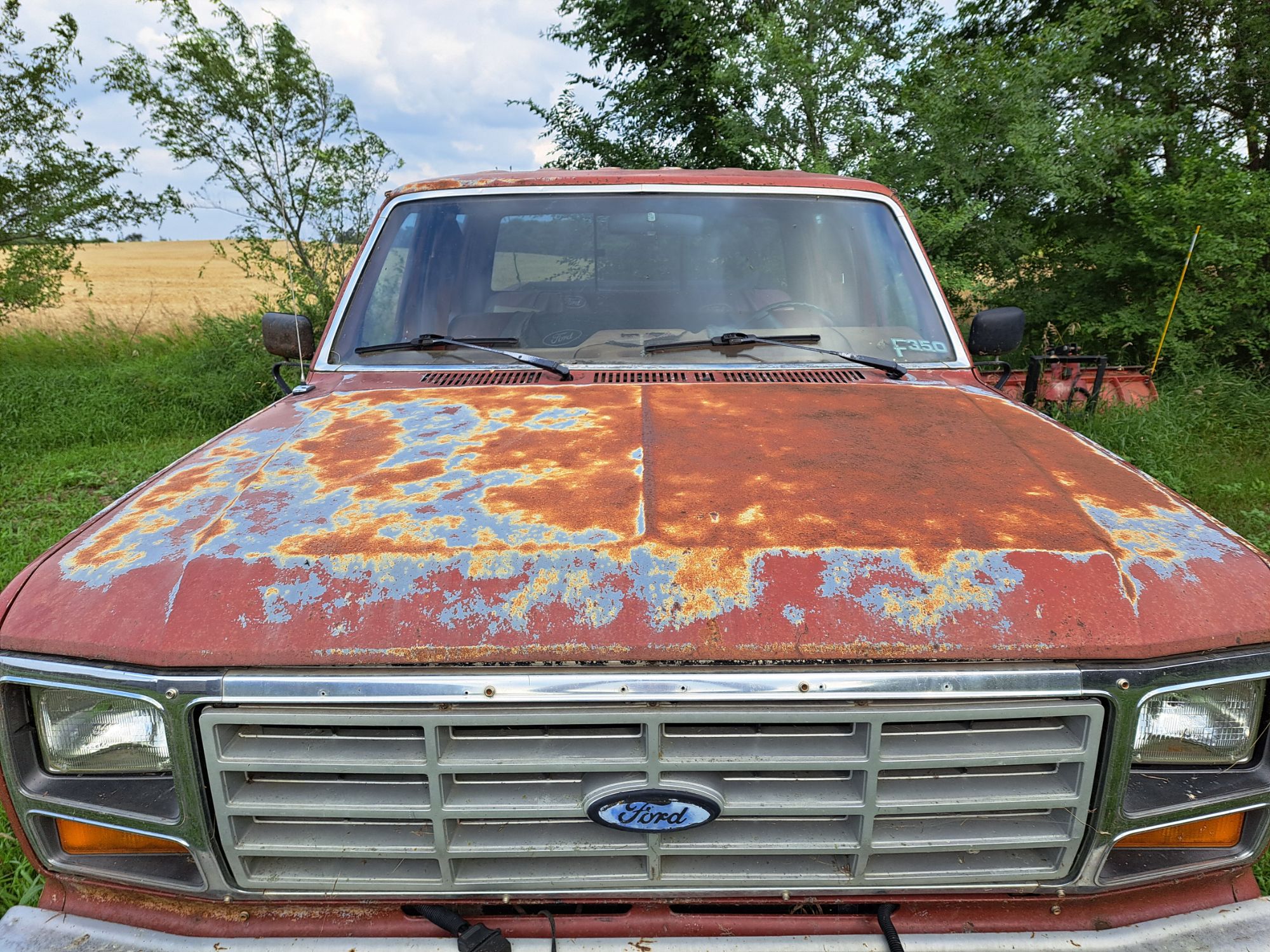 Snirt is a 1984 Ford 350, and I don’t know what color it used to be, but now, its color is rust.