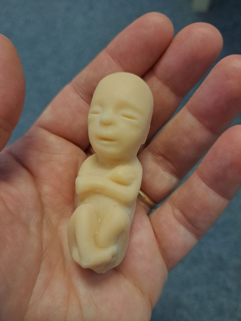 I cradled the little rubbery model of a 12 week old fetus in my hand.
