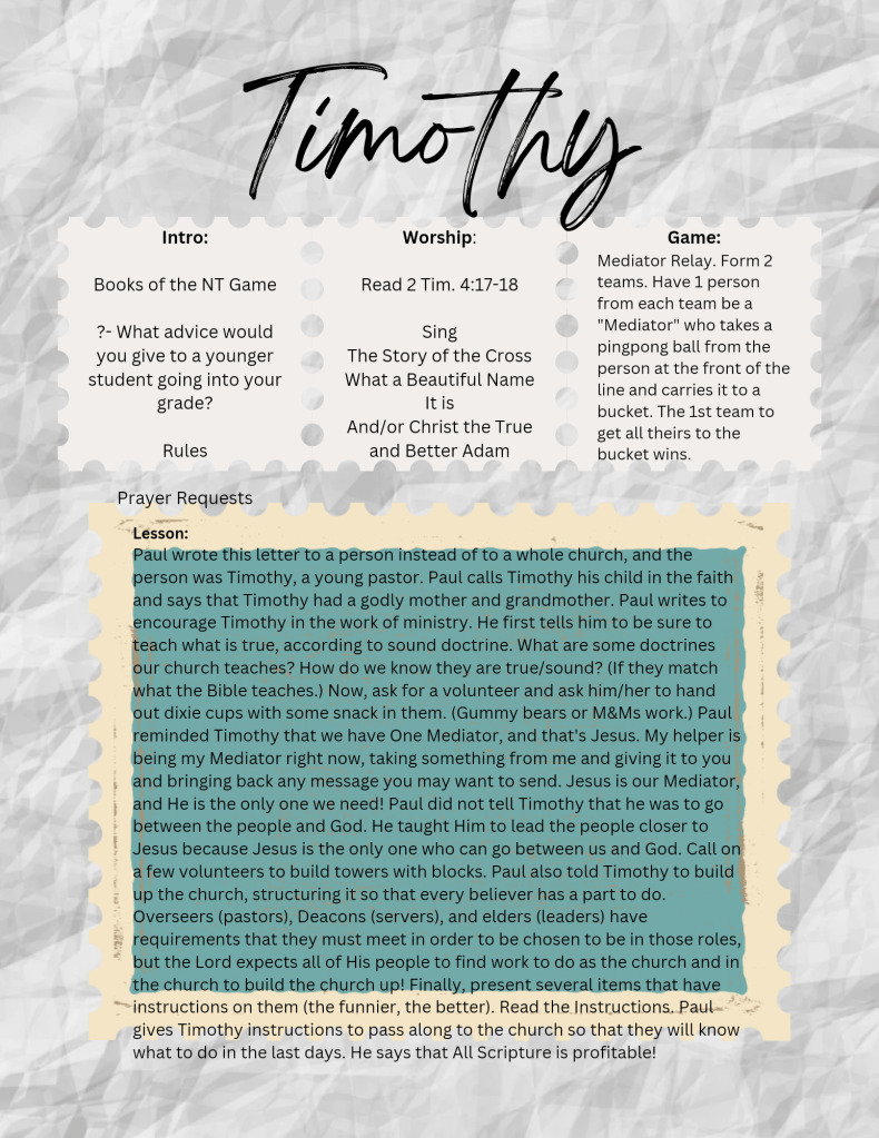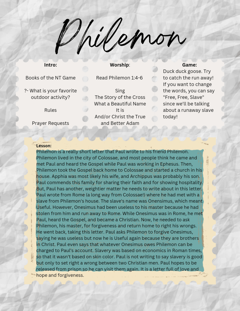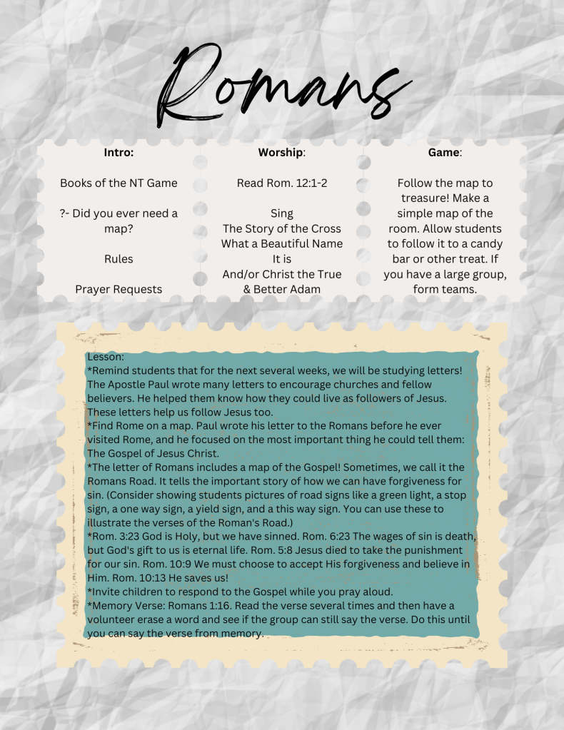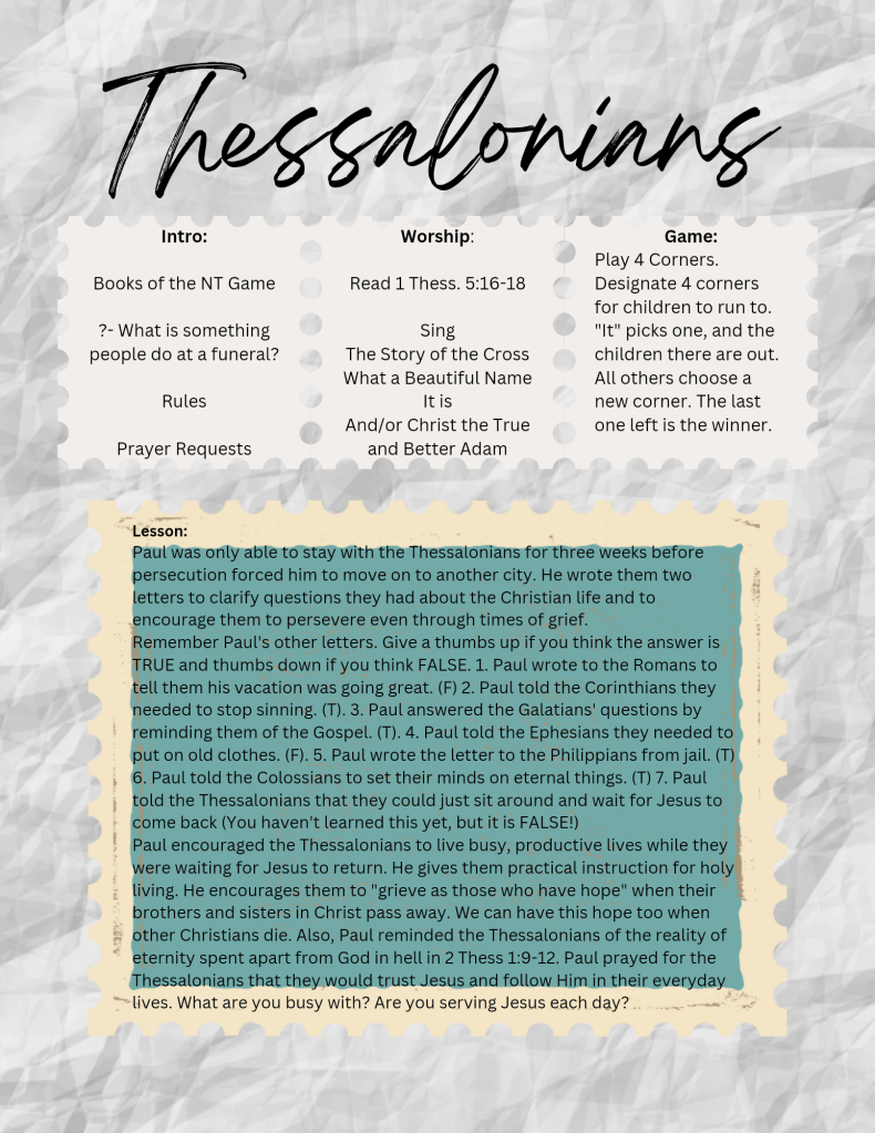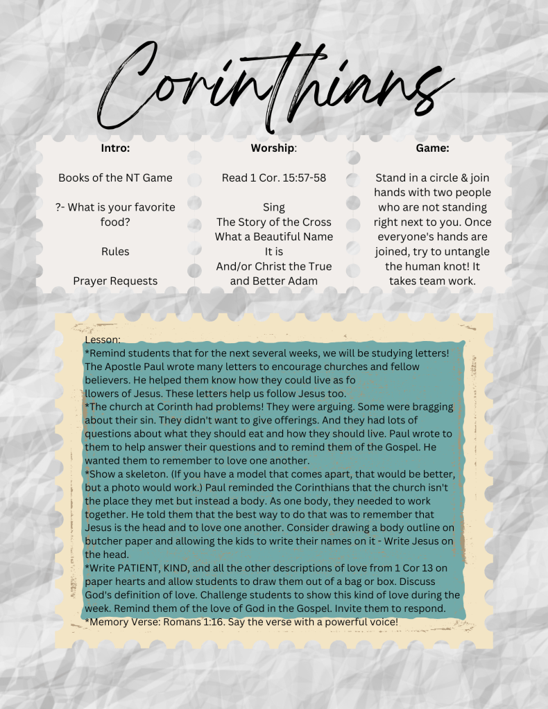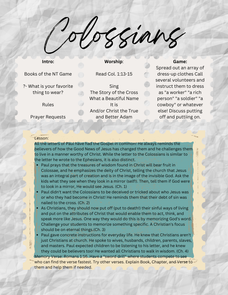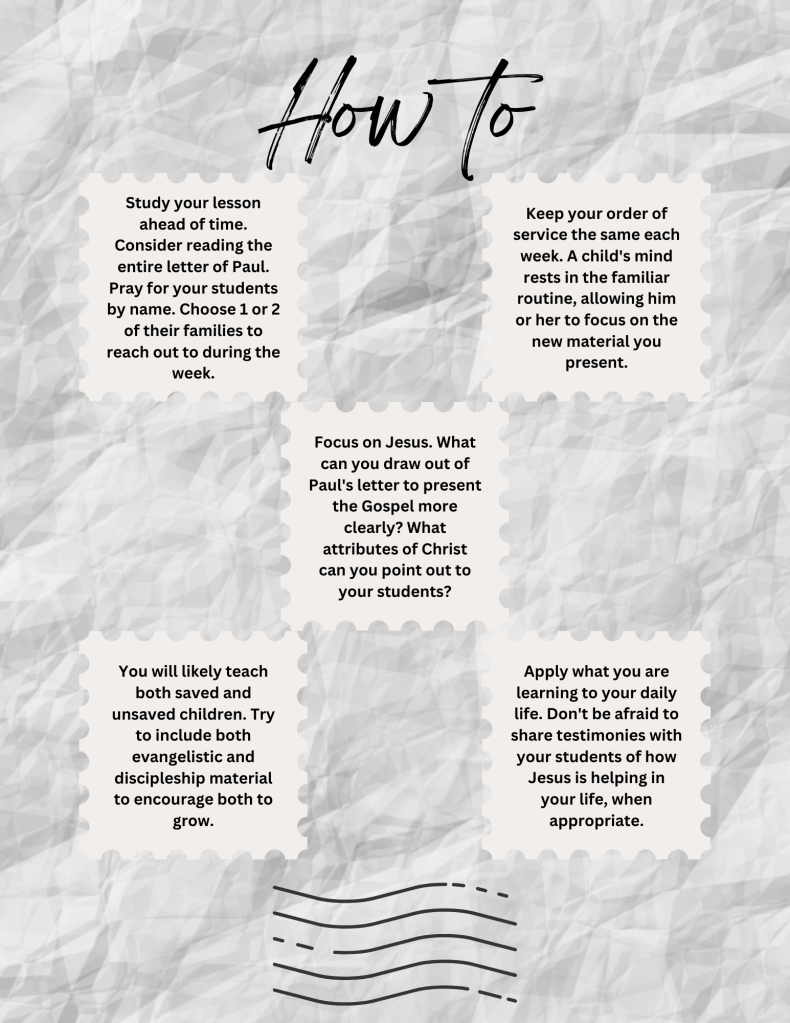 Letters of Love explores the themes of the Pauline epistles, encouraging children to worship Jesus using the truths found therein. A lesson for each epistle will be added each week throughout the Spring.