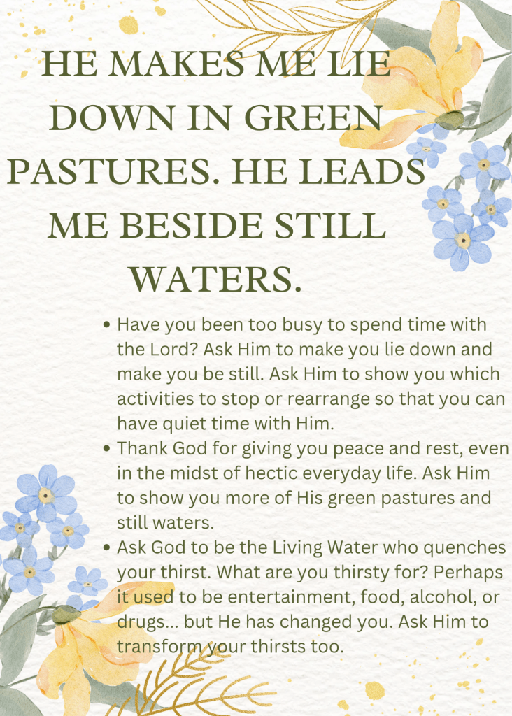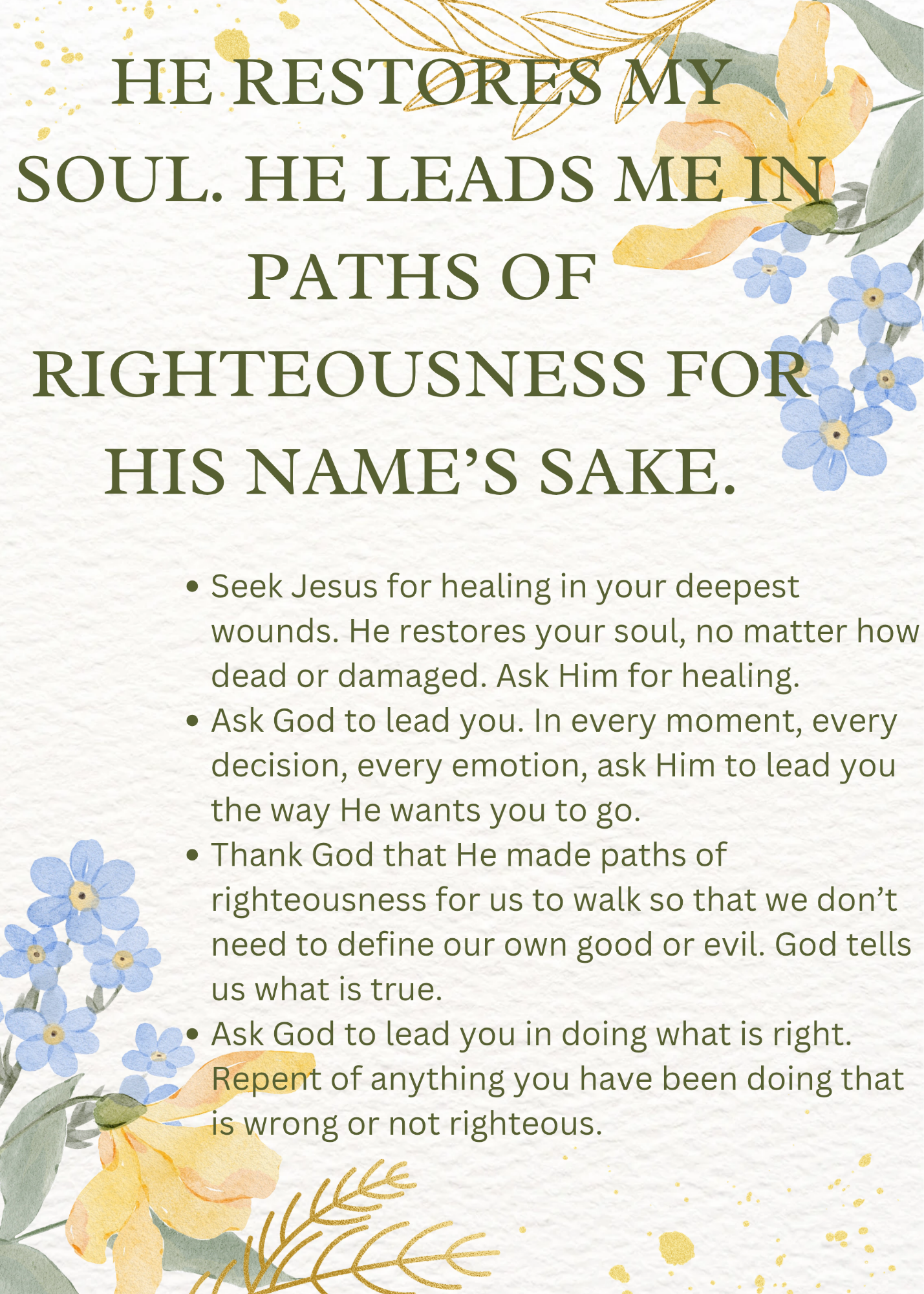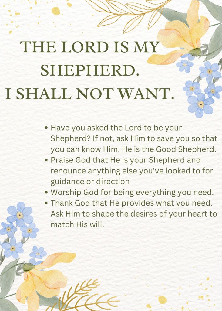 Praying Psalm 23 Sign Up for Sarah’s Newsletter Share this: Click to share on X (Opens in new window) X Click to share on Facebook (Opens in new window) Facebook Click to email a link to a friend (Opens in new window) Email Like Loading...